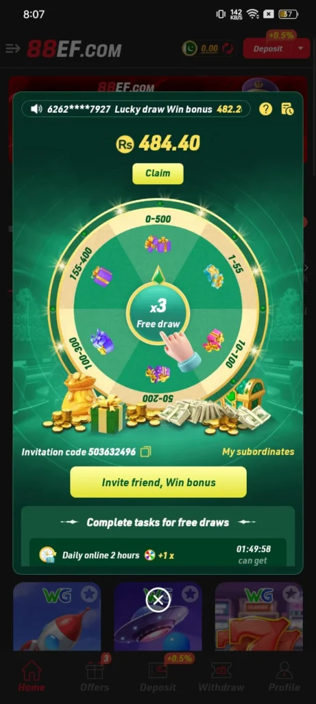 Now here’s the part everyone loves: the referral program. Bring your friends to 88EF, and you get up to RS. 666 for each person who joins using your link. That’s serious money just for sharing an app. It stops being just a game at that point. You’re building a side income while your friends also get a chance to earn. More friends mean more cash in your pocket.